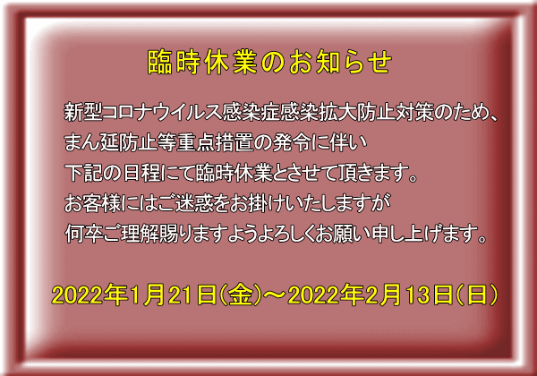 電話・FAX (0568)33-1601 / 営業時間 PM6:00〜PM11:00/ 定休日 毎週木曜